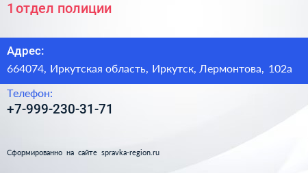 1 отдел полиции по адресу 664074, Иркутская область, Иркутск, Лермонтова, 102а в дальнейшем Организация, размещена в следующих категориях: