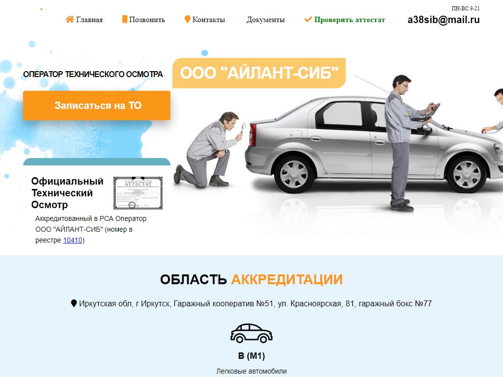 Айлант-Сиб, пункт технического осмотра автомобилей по адресу 664023, Иркутская область, Иркутск, Пискунова, 146/1г в дальнейшем Организация, размещена в следующих категориях: