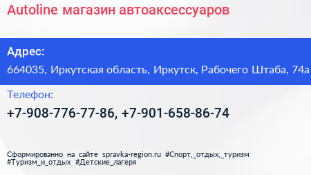 Autoline, магазин автоаксессуаров по адресу 664035, Иркутская область, Иркутск, Рабочего Штаба, 74а в дальнейшем Организация, размещена в следующих категориях: