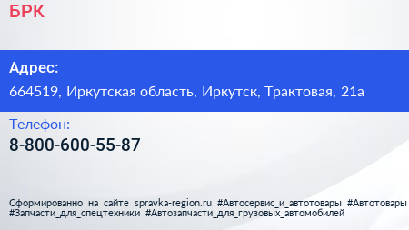 БРК по адресу 664519, Иркутская область, Иркутск, Трактовая, 21а в дальнейшем Организация, размещена в следующих категориях: