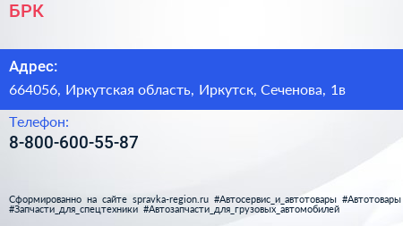 БРК по адресу 664056, Иркутская область, Иркутск, Сеченова, 1в в дальнейшем Организация, размещена в следующих категориях:
