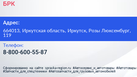 БРК по адресу 664013, Иркутская область, Иркутск, Розы Люксембург, 119 в дальнейшем Организация, размещена в следующих категориях: