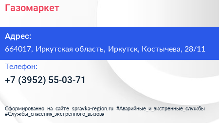 Газомаркет по адресу 664017, Иркутская область, Иркутск, Костычева, 28/11 в дальнейшем Организация, размещена в следующих категориях: