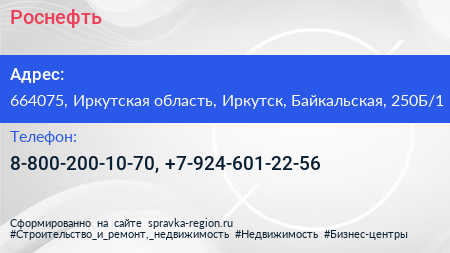 Роснефть по адресу 664075, Иркутская область, Иркутск, Байкальская, 250Б/1 в дальнейшем Организация, размещена в следующих категориях: