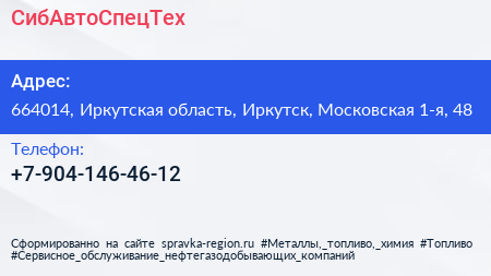 СибАвтоСпецТех по адресу 664014, Иркутская область, Иркутск, Московская 1-я, 48 в дальнейшем Организация, размещена в следующих категориях: