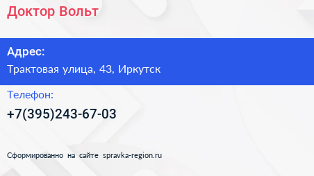 Доктор Вольт по адресу Трактовая улица, 43, Иркутск в дальнейшем Организация, размещена в следующих категориях: