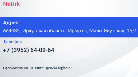 NetIrk по адресу 664035, Иркутская область, Иркутск, Мало-Якутская, 16/1 в дальнейшем Организация, размещена в следующих категориях: