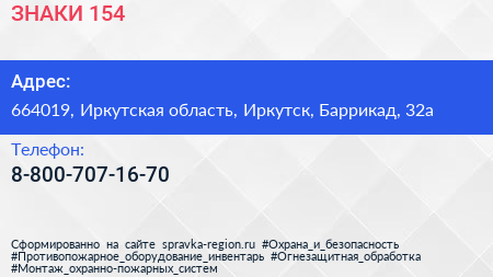 ЗНАКИ 154 по адресу 664019, Иркутская область, Иркутск, Баррикад, 32а в дальнейшем Организация, размещена в следующих категориях: