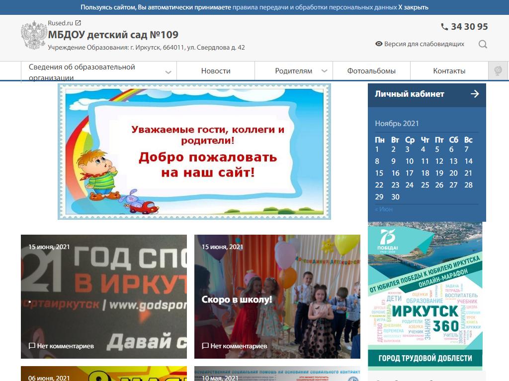 Детский сад №109, г. Иркутск по адресу 664011, Иркутская область, Иркутск, Свердлова, 42 в дальнейшем Организация, размещена в следующих категориях: