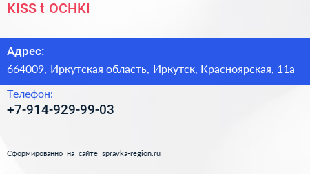 KISS.t.OCHKI по адресу 664009, Иркутская область, Иркутск, Красноярская, 11а в дальнейшем Организация, размещена в следующих категориях: