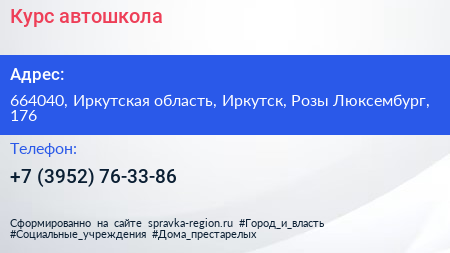 Курс, автошкола по адресу 664040, Иркутская область, Иркутск, Розы Люксембург, 176 в дальнейшем Организация, размещена в следующих категориях:
