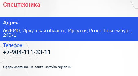 Спецтехника по адресу 664040, Иркутская область, Иркутск, Розы Люксембург, 240/1 в дальнейшем Организация, размещена в следующих категориях: