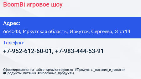 BoomBi, игровое шоу по адресу 664043, Иркутская область, Иркутск, Сергеева, 3 ст14 в дальнейшем Организация, размещена в следующих категориях: