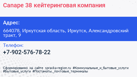 Canape 38, кейтеринговая компания по адресу 664078, Иркутская область, Иркутск, Александровский тракт, 9 в дальнейшем Организация, размещена в следующих категориях: