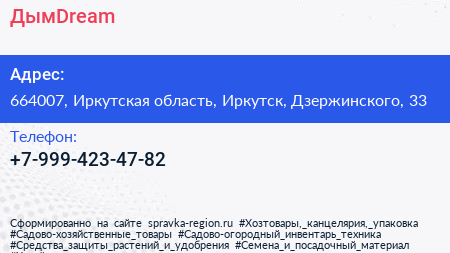 ДымDream по адресу 664007, Иркутская область, Иркутск, Дзержинского, 33 в дальнейшем Организация, размещена в следующих категориях: