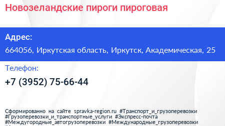 Новозеландские пироги, пироговая по адресу 664056, Иркутская область, Иркутск, Академическая, 25 в дальнейшем Организация, размещена в следующих категориях: