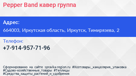 Pepper Band, кавер-группа по адресу 664003, Иркутская область, Иркутск, Тимирязева, 2 в дальнейшем Организация, размещена в следующих категориях: