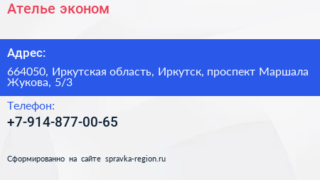 Ателье-эконом по адресу 664050, Иркутская область, Иркутск, проспект Маршала Жукова, 5/3 в дальнейшем Организация, размещена в следующих категориях: