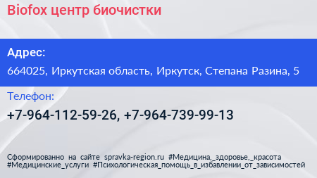 Biofox, центр биочистки по адресу 664025, Иркутская область, Иркутск, Степана Разина, 5 в дальнейшем Организация, размещена в следующих категориях: