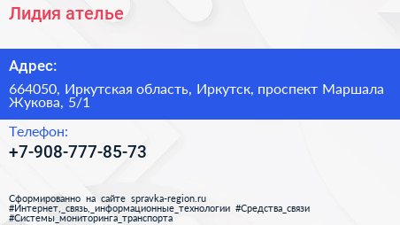 Лидия, ателье по адресу 664050, Иркутская область, Иркутск, проспект Маршала Жукова, 5/1 в дальнейшем Организация, размещена в следующих категориях: