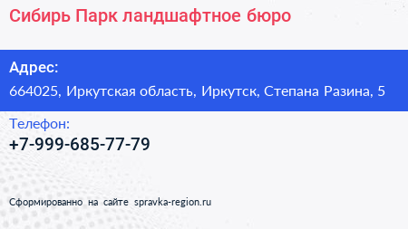Сибирь Парк, ландшафтное бюро по адресу 664025, Иркутская область, Иркутск, Степана Разина, 5 в дальнейшем Организация, размещена в следующих категориях:
