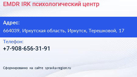 EMDR IRK, психологический центр по адресу 664039, Иркутская область, Иркутск, Терешковой, 17 в дальнейшем Организация, размещена в следующих категориях: