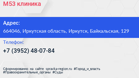М53, клиника по адресу 664046, Иркутская область, Иркутск, Байкальская, 129 в дальнейшем Организация, размещена в следующих категориях: