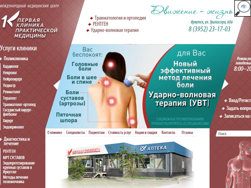 Первая клиника практической медицины, международный медицинский центр по адресу 664047, Иркутская область, Иркутск, Трилиссера, 60а в дальнейшем Организация, размещена в следующих категориях: