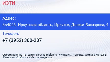ИЗТИ по адресу 664043, Иркутская область, Иркутск, Доржи Банзарова, 4 в дальнейшем Организация, размещена в следующих категориях: