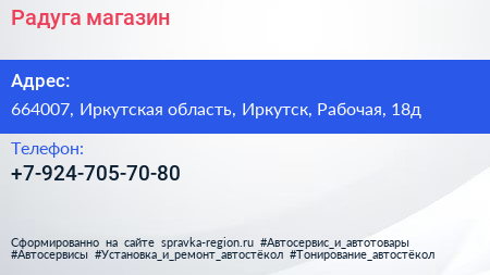 Радуга, магазин по адресу 664007, Иркутская область, Иркутск, Рабочая, 18д в дальнейшем Организация, размещена в следующих категориях:
