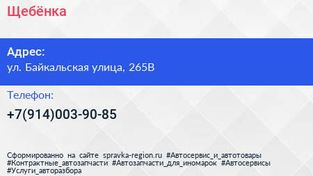 Щебёнка по адресу ул. Байкальская улица, 265В в дальнейшем Организация, размещена в следующих категориях: