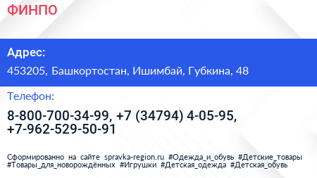ФИНПО по адресу 453205, Башкортостан, Ишимбай, Губкина, 48 в дальнейшем Организация, размещена в следующих категориях: