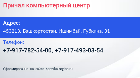 Причал, компьютерный центр по адресу 453213, Башкортостан, Ишимбай, Губкина, 31 в дальнейшем Организация, размещена в следующих категориях:
