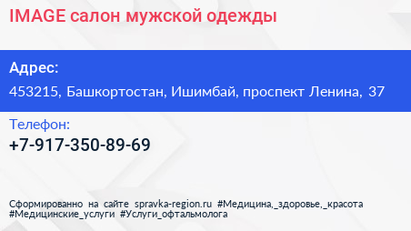 IMAGE, салон мужской одежды по адресу 453215, Башкортостан, Ишимбай, проспект Ленина, 37 в дальнейшем Организация, размещена в следующих категориях: