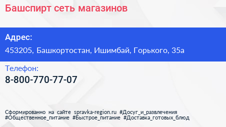Башспирт, сеть магазинов по адресу 453205, Башкортостан, Ишимбай, Горького, 35а в дальнейшем Организация, размещена в следующих категориях: