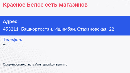 Красное & Белое, сеть магазинов по адресу 453211, Башкортостан, Ишимбай, Стахановская, 22 в дальнейшем Организация, размещена в следующих категориях: