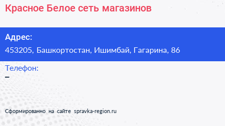 Красное & Белое, сеть магазинов по адресу 453205, Башкортостан, Ишимбай, Гагарина, 86 в дальнейшем Организация, размещена в следующих категориях:
