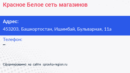 Красное & Белое, сеть магазинов по адресу 453203, Башкортостан, Ишимбай, Бульварная, 11а в дальнейшем Организация, размещена в следующих категориях: