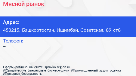 Мясной рынок по адресу 453215, Башкортостан, Ишимбай, Советская, 89 ст8 в дальнейшем Организация, размещена в следующих категориях:
