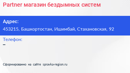 Partner, магазин бездымных систем по адресу 453215, Башкортостан, Ишимбай, Стахановская, 92 в дальнейшем Организация, размещена в следующих категориях: