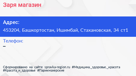 Заря, магазин по адресу 453204, Башкортостан, Ишимбай, Стахановская, 34 ст1 в дальнейшем Организация, размещена в следующих категориях: