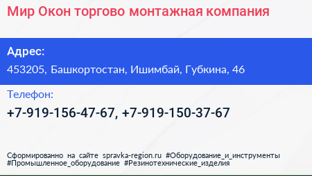 Мир Окон, торгово-монтажная компания по адресу 453205, Башкортостан, Ишимбай, Губкина, 46 в дальнейшем Организация, размещена в следующих категориях: