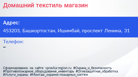 Домашний текстиль, магазин по адресу 453203, Башкортостан, Ишимбай, проспект Ленина, 31 в дальнейшем Организация, размещена в следующих категориях: