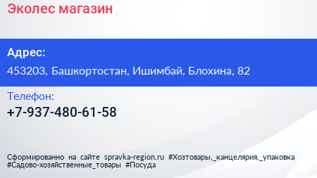 Эколес, магазин по адресу 453203, Башкортостан, Ишимбай, Блохина, 82 в дальнейшем Организация, размещена в следующих категориях: