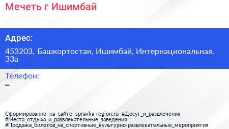 Мечеть, г. Ишимбай по адресу 453203, Башкортостан, Ишимбай, Интернациональная, 33а в дальнейшем Организация, размещена в следующих категориях: