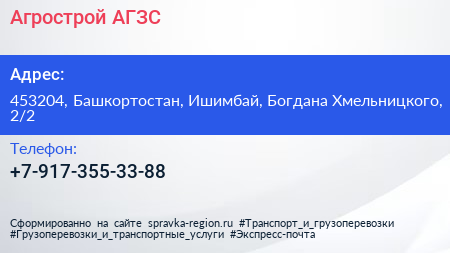 Агрострой, АГЗС по адресу 453204, Башкортостан, Ишимбай, Богдана Хмельницкого, 2/2 в дальнейшем Организация, размещена в следующих категориях: