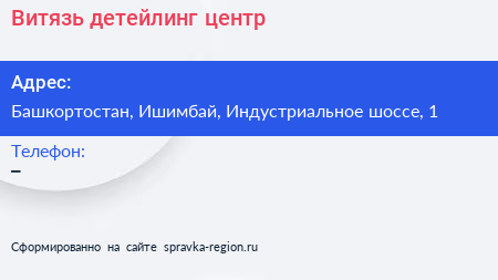 Витязь, детейлинг центр по адресу Башкортостан, Ишимбай, Индустриальное шоссе, 1 в дальнейшем Организация, размещена в следующих категориях: