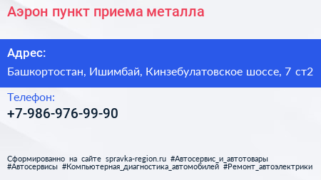 Аэрон, пункт приема металла по адресу Башкортостан, Ишимбай, Кинзебулатовское шоссе, 7 ст2 в дальнейшем Организация, размещена в следующих категориях: