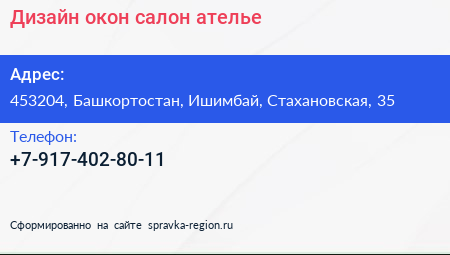 Дизайн окон, салон-ателье по адресу 453204, Башкортостан, Ишимбай, Стахановская, 35 в дальнейшем Организация, размещена в следующих категориях: