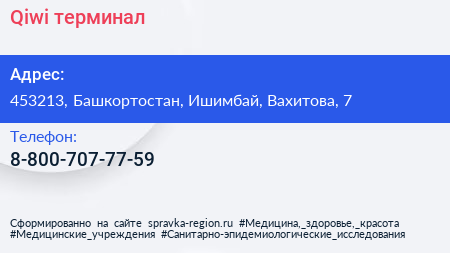 Qiwi, терминал по адресу 453213, Башкортостан, Ишимбай, Вахитова, 7 в дальнейшем Организация, размещена в следующих категориях:
